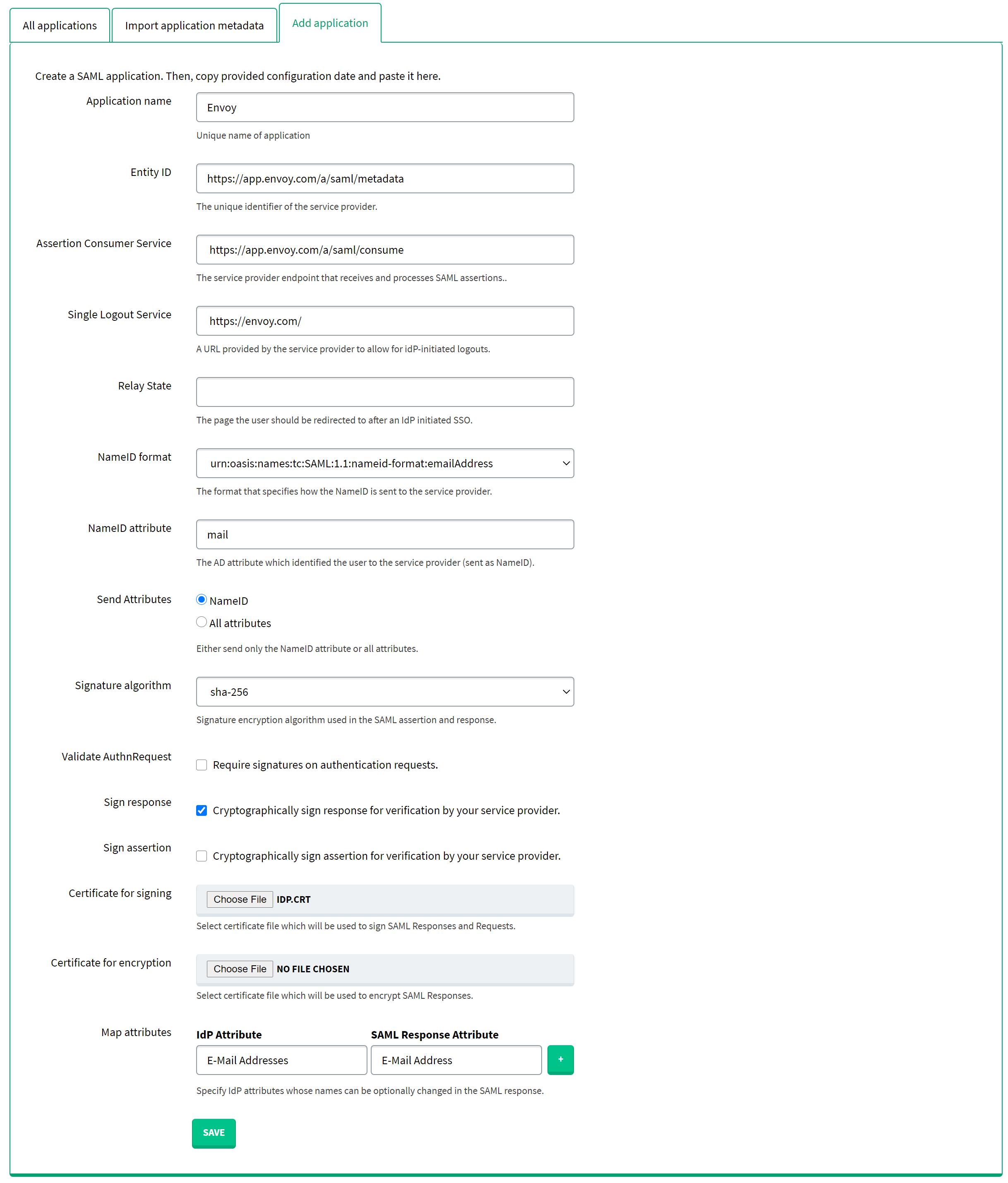 10. Click Save to add your SAML configuration.