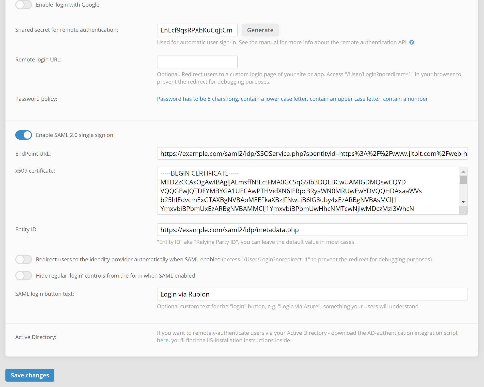 | Application name | Enter a name for the application, e.g. Jitbit. The name will be displayed during Rublon 2FA. |
