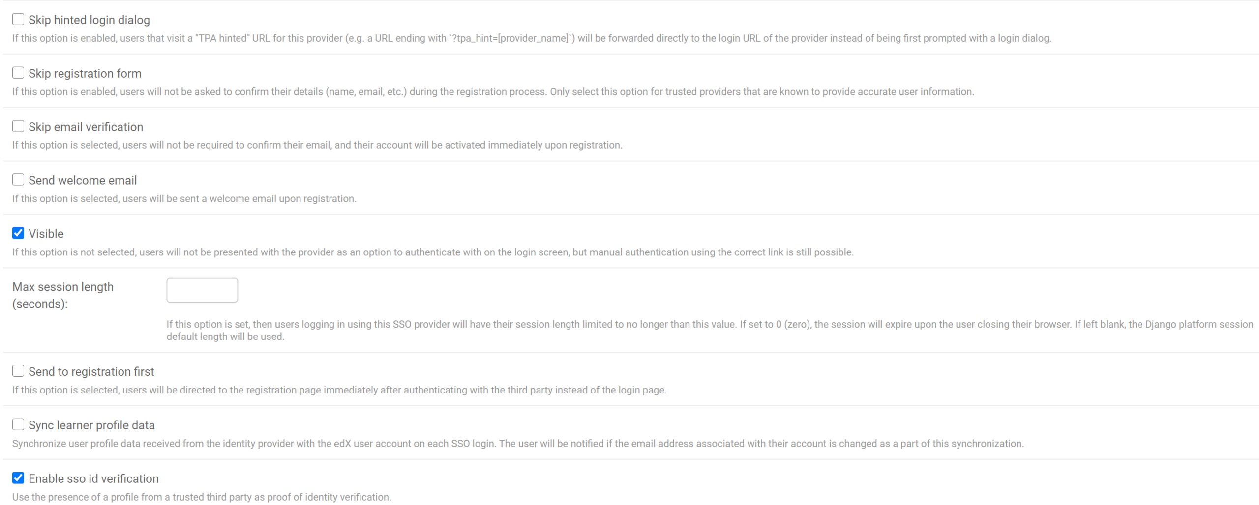 | Entity ID | Enter the Entity ID you set in step 17 of the Open edX section. |