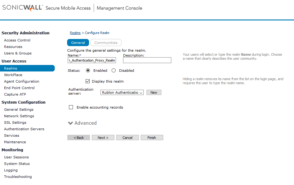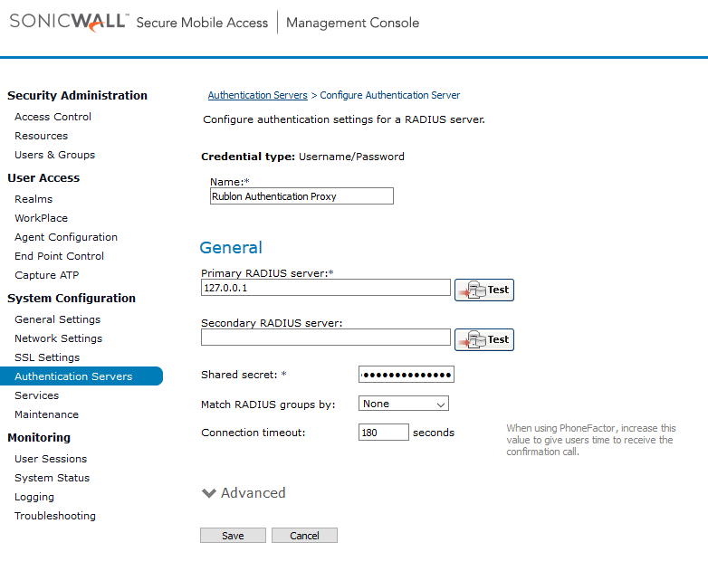 13. Select the previously created Rublon Authentication Proxy server in Authentication Server.