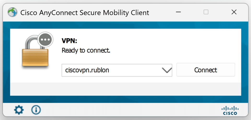 1. Open the Cisco AnyConnect Secure Mobility Client and connect to your public FQDN/IP of the Remote Access VPN