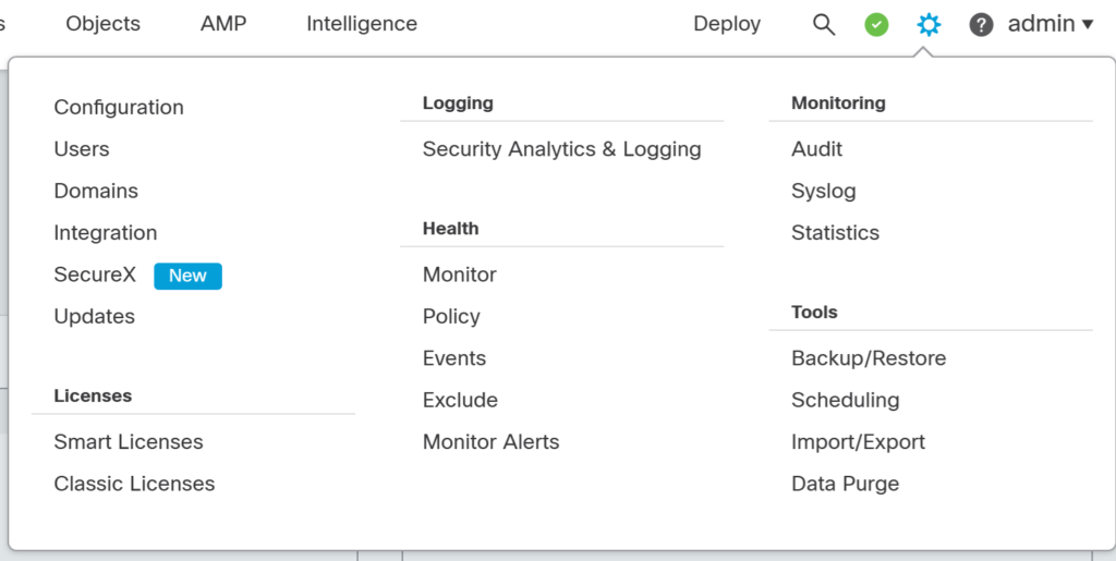 4. You will be connected to the Cisco FirePower Management admin interface.