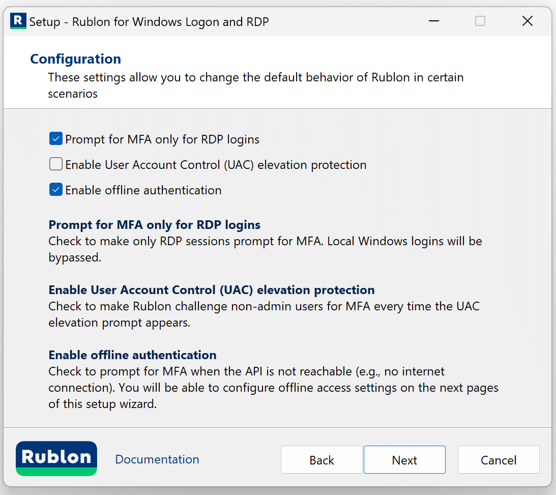 Offline Mode and Other Options in Rublon for Windows