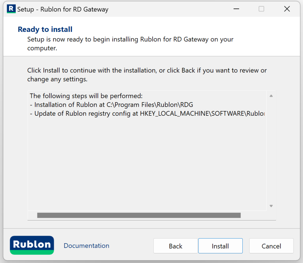 7. Rublon MFA for RD Gateway is ready to install.