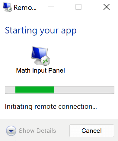 3. Remote Desktop will start connecting and launching the app you selected.