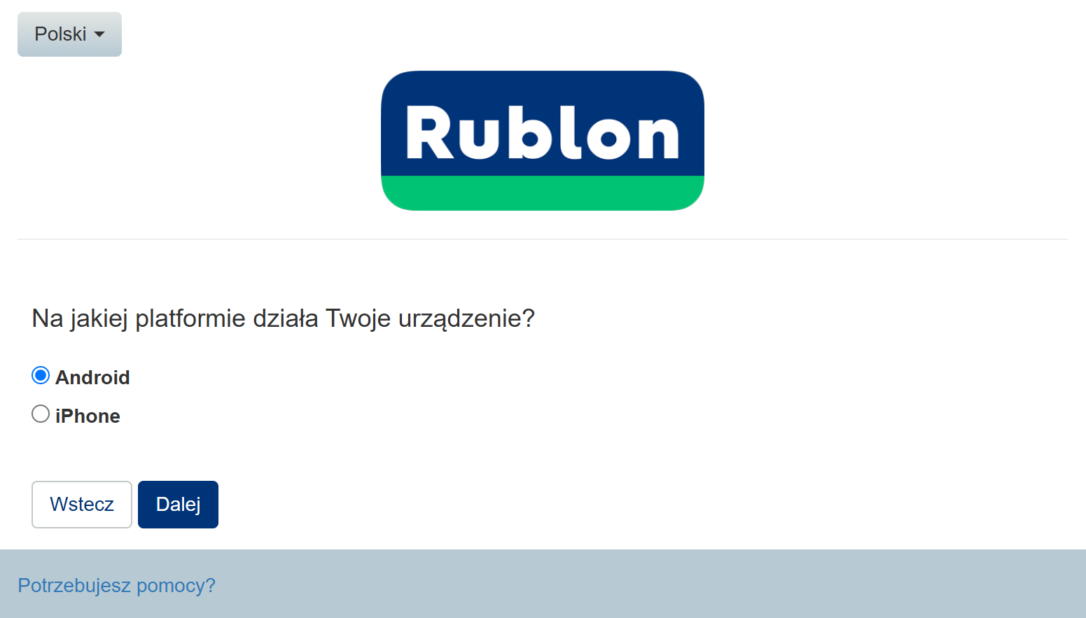 2. Wybierz na jakiej platformie (systemie operacyjnym) działa Twoje urządzenie i kliknij Dalej.