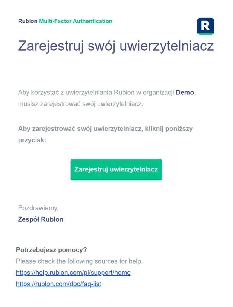 2. Otrzymasz wiadomość e-mail od usługi Rublon.