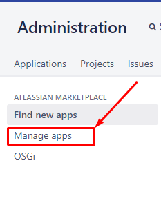 3. Go to the Manage apps panel in Administration and select the Manage apps tab from the left menu, as shown in the picture below.
