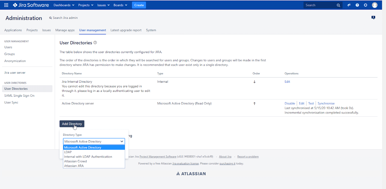 Installing the SAML Single Sign On for Jira plugin (or another plugin for Single Sign On) allows you to connect to an external identity provider (Rublon Access Gateway in our case). This is a required and next step after synchronizing your users.
