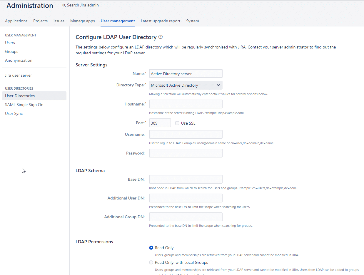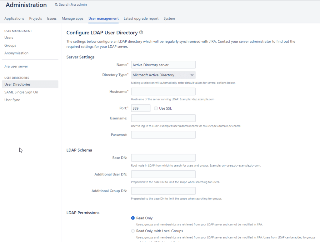 | Hostname | Enter the hostname or IP address of your Active Directory server. |