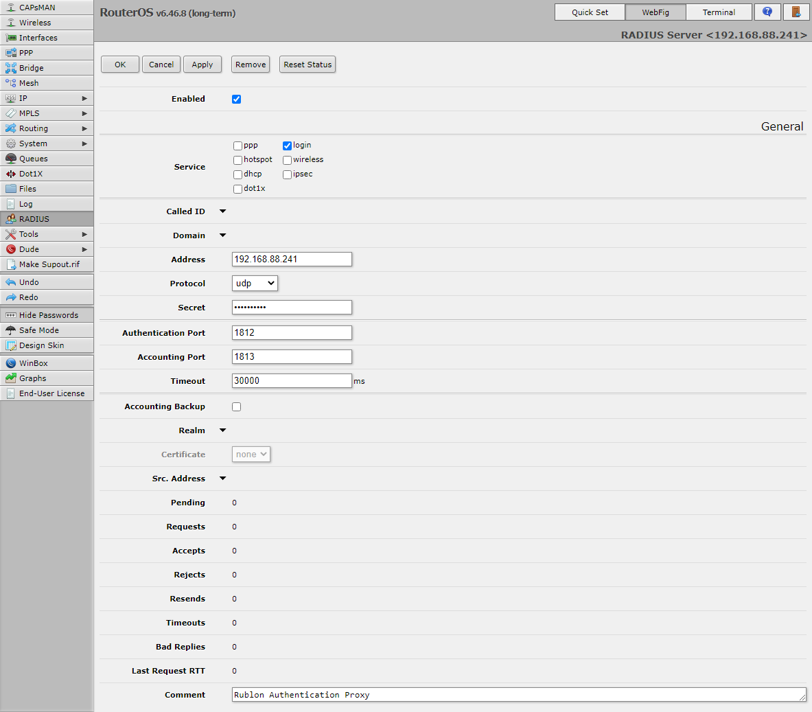 You need to install and configure Rublon Authentication Proxy before configuring MikroTik to work with it. Read Rublon Authentication Proxy and follow the steps in the Installation and Configuration sections. Afterward, follow the Configuration section in this document.