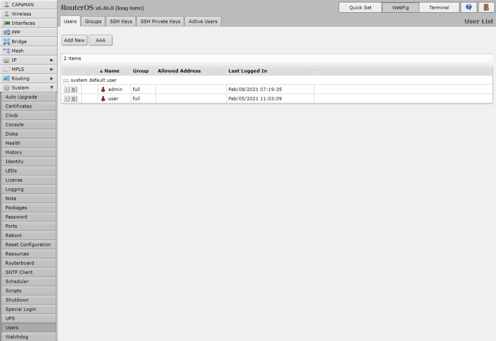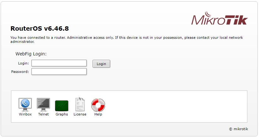 You will need a MikroTik RouterOS management tool of your choice, e.g. Winbox, Webfig. This tutorial shows the configuration using Webfig.