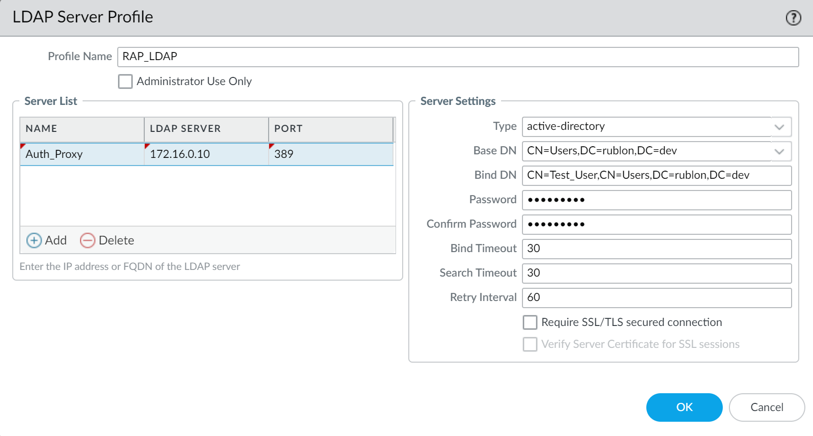 | Server Profile | Select the LDAP Server Profile you have created before. |