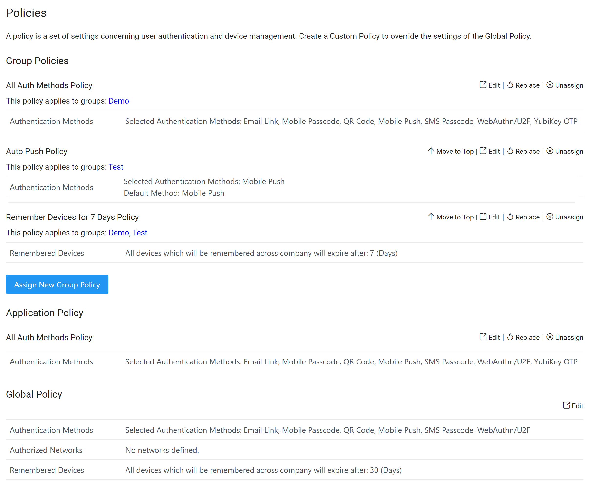 - Global Policy – These settings are applicable only if not overridden by Group Policy or Application Policy