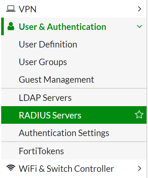 2. Click the User & Authentication section on the left to expand it and click RADIUS Servers.