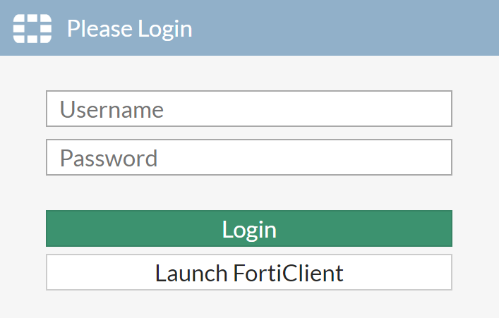 Rublon MFA for FortiGate SSL VPN supports both login via web browser and FortiClient VPN. While this example portrays logging in to Fortinet FortiGate SSL VPN via a web browser, you can also click Launch FortiClient and use the FortiClient VPN to log in.
