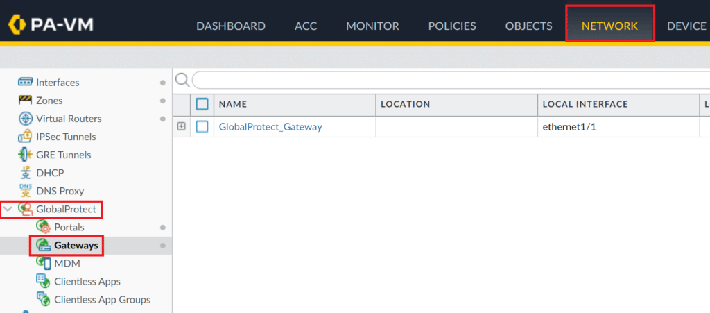 2. Go to GlobalProtect → Gateways.