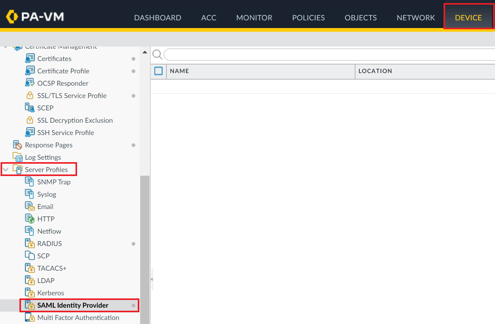 1. Go to Device → Authentication Profile.