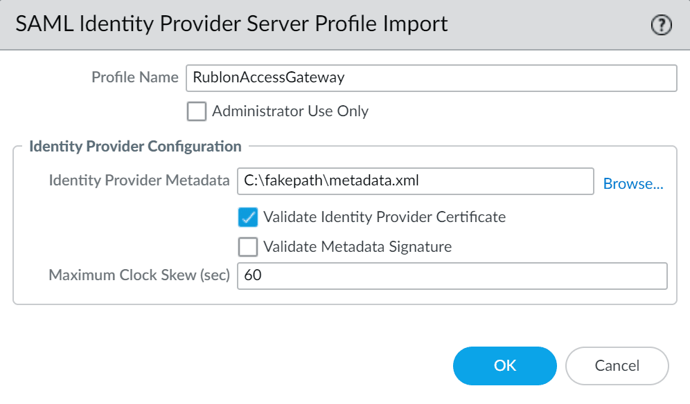 | Maximum Clock Skew (sec) | The maximum allowed difference in system clocks between the IdP server and Palo Alto. The default value is 60 seconds and we recommend you do not to change it. |