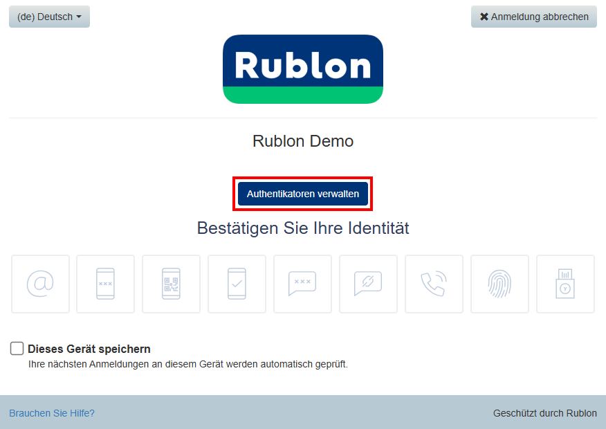 Eine Selbstregistrierung Ihres mobilen Geräts ist bei jeder Anmeldung bei einem mit Rublon integrierten Dienst möglich.