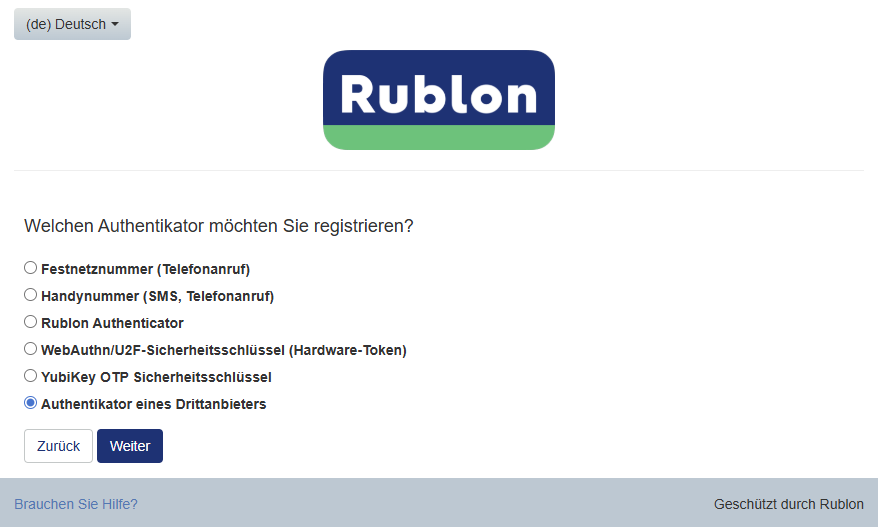 Es kann jeweils nur eine Authenticator-App eines Drittanbieters registriert werden. Sie können jedoch sowohl den Rublon Authenticator als auch eine Drittanbieter-App registrieren und beide flexibel verwenden.