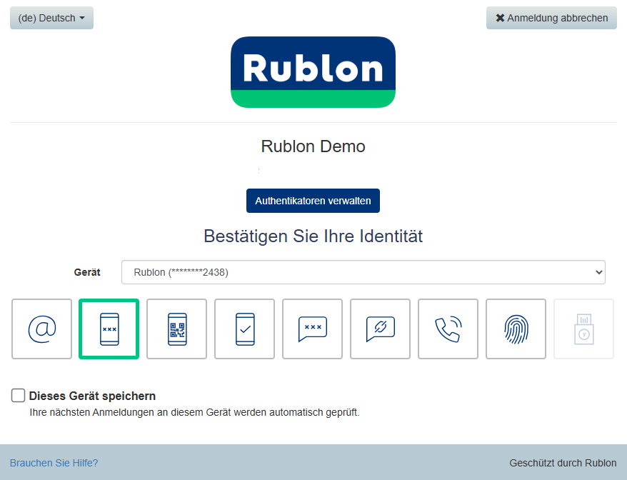 Beispiel für die Anmeldung mit einer Drittanbieter-App 1: Rublon Prompt