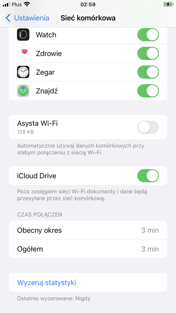 - Zalecamy wyłączenie funkcji Wi-Fi Assist. Funkcja Wi-Fi Assist jest zaprojektowana tak, aby wspierać słabe połączenie Wi-Fi, korzystając z danych komórkowych. Aby wyłączyć Wi-Fi Assist: