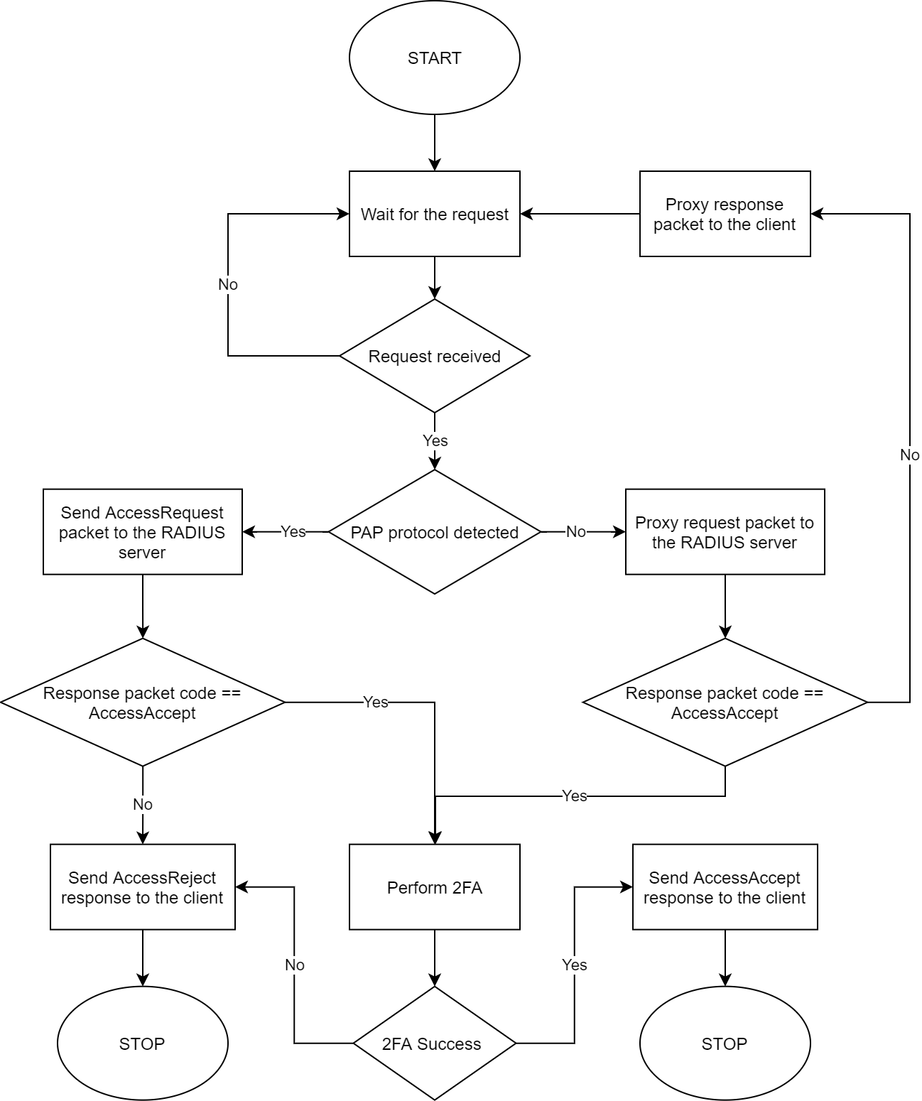 By default, the Rublon Authentication Proxy uses only the PAP protocol to authenticate users. This means that all systems that try to use other protocols (like CHAPv1, EAP-MS-CHAPv2) to communicate with Rublon Authentication Proxy will not work. However, it is possible to configure the Rublon Authentication Proxy to proxy all non-PAP requests to the RADIUS server.