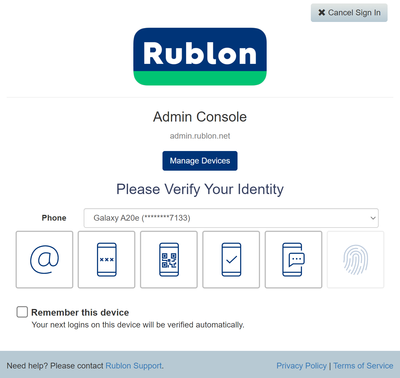 10. You will be asked to choose one of the available authentication methods to sign in to the Admin Console.
