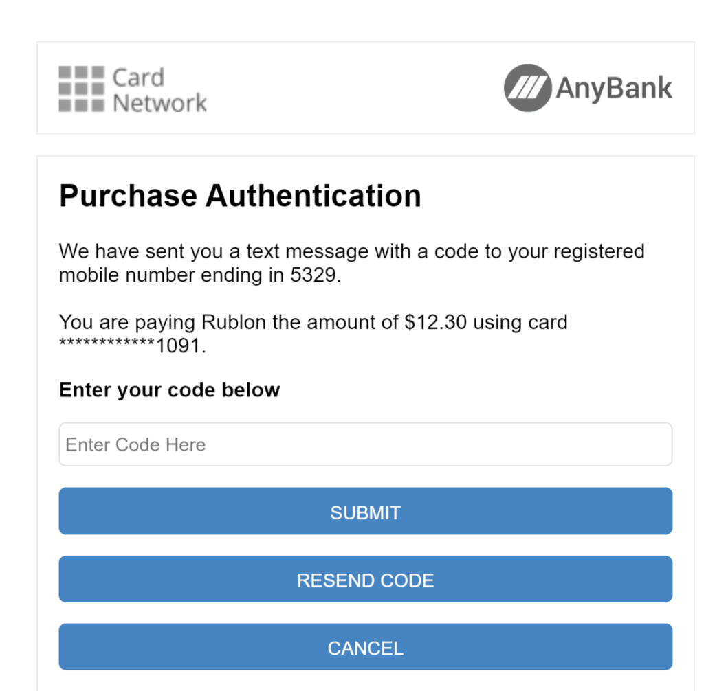 The next step, common for all purchases, involves an extra step of authentication during which a message is sent to your phone number. The message contains a passcode you must provide to finalize the transaction.